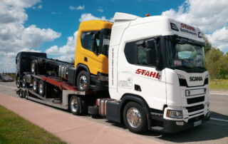 Der Transport von Fahrzeugen aus dem Bereich „High & Heavy“ hat Tradition bei Spedition Stahl. So werden unter anderem SCANIA-Neufahrzeuge bereits seit Jahren mit Hilfe von unseren eigens entwickelten Spezialaufliegern an ihre Zielorte in ganz Europa geliefert. Das eingesetzte Spezialequipment sorgt für höchstmögliche Qualität, Sicherheit und Wirtschaftlichkeit, sowohl für die Be- und Entladung als auch für die Beförderung selbst.