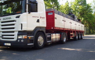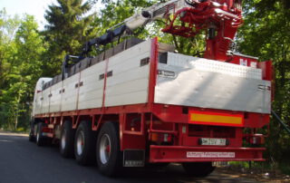 Unsere offenen Sattelzüge sind mit leistungsstarken Ladekranen versehen, was flexible Entladevorgänge auf den Baustellen ermöglicht. In Verbindung mit unserem speziell auf diese Belange geschulten Fahrpersonal verfügen wir über die optimale Transportlösung für viele Baustoffarten des Hoch- und Tiefbaus.